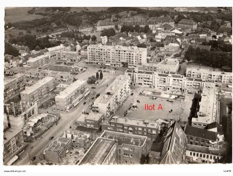 Histoire : L'îlot A a été remembré et construit par différents architectes associés à André Lurçat, architecte-urbaniste de la reconstruction de la ville. Les différents immeubles, répartis en "blocs", ont été construits entre 1948 et 1956. Le bloc 1, donnant sur l'avenue Jean-Mabuse et la place de la Concorde, appelé immeuble Lecluyse, a été construit par l'architecte Panos Djélépy entre 1948 et 1951. Le bloc 2, situé entre l'avenue Roosevelt et la place de la Concorde, est un immeuble de logements, dit Les Arcades, construit par l'architecte Jean Badovici. La date de construction n'est pas connue. L'immeuble de logement et magasin de commerce, appelé bloc 3 et formant l'angle de l'avenue Roosevelt et de la rue G.-Paillot, a été construit par l'architecte Pierre Boens entre 1949 et 1951. En 1956, cet architecte a construit le bloc 5 dans la même rue. Cet immeuble est adossé au bloc 6 qui abrite les banques Société Générale et Crédit du Nord, construites par l'architecte Henri Lafitte à une date inconnue. Le bloc 7 ferme l'îlot côté ouest, entre la rue G.-Paillot et la place de la Concorde, et est situé entre les deux immeubles (blocs 3 et 5) construits par l'architecte Pierre Boens. L'architecte Gustave Soudet en est le maître d'oeuvre entre 1949 et 1952.