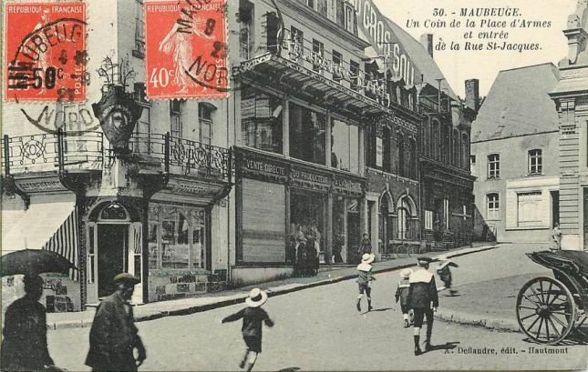 Au coin de la rue St Jacques et de la rue du collège (Coutelle) était le magnifique théâtre de Maubeuge qui fut détruit lors des bombardements de la seconde guerre mondiale