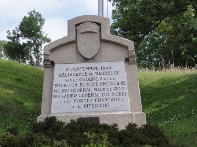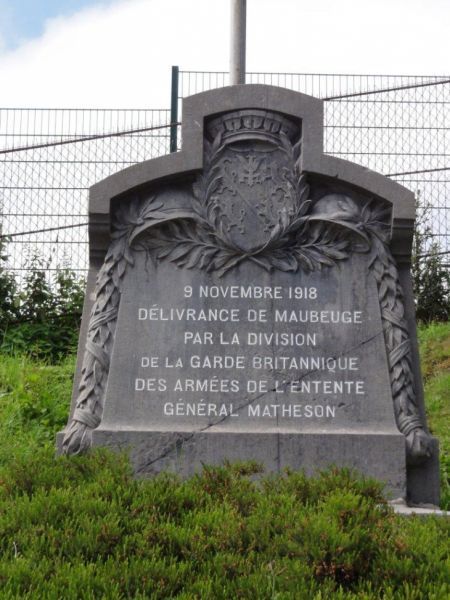 De chaque coté de son emplacement une Pierre historiée à droite commémore de la délivrance de Maubeuge,le 2 septembre 1944,par la troisième division américaine commandée par le général Rose et les FFI. et à gauche une autre Pierre commémore la délivrance de Maubeuge,le 9 novembre 1918 par la garde Britanique du général Matheson.