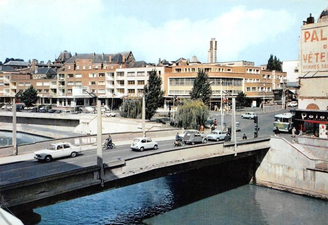 Le Palais Du Vêtement dans les années 60.On devine la période par la 404 Peugeot blanche qui travers le pont.