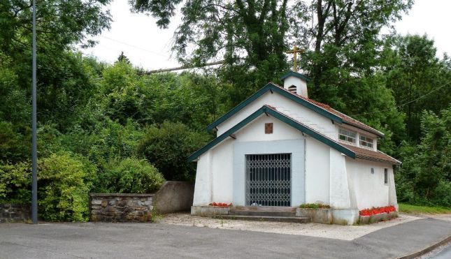 Cette chapelle est due à. la piété des gens de la régionde Maubeuge pour leur sainte Patronne Aldegonde. Celle-ci était la seconde fille d'un puissant seigneur Walbert IV qui habitait COUSOLRE. Vous n'ignorez pas qu'elle quitta le château paternel ne voulant pas épouser le prince Eudon dont le père était le Chef de l’Heptarchie saxonne en Angleterre, elle s'achemina vers Malbodium (ainsi s’appelaient les mauvais bois qui couvraient les bords de la Sambre). C'est au cours de cette fuite, qu'exténuée de fatigue, elle s’arrêta au lieu-dit, aujourd'hui, le Glacis. Ayant soif, jaillit une source qui existe encore aujourd'hui. C’est à l'endroit oùse trouve cette source, qu'au cours des siècles la Chapelle a été construite et devint un lieu de pèlerinage.