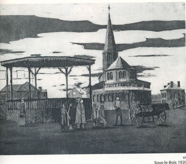 1949 : Exposition au musée de Maubeuge de dessins et monotypes, de plâtres sculptés, de chemises brodées, de gros réalisés à Sars-Poteries. M. Boez, conservateur du musée, achète le Saint François de Raymond. Rencontre de l’Abbé Mériaux.