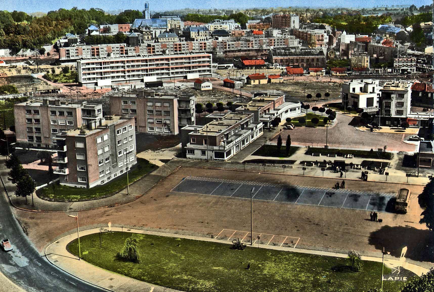 Comme d'autres Places celle de Wattignies accueillais des baraquements provisoires pour permettre aux commerçants de Maubeuge de poursuivre leur activité en attendant la reconstruction de la ville.